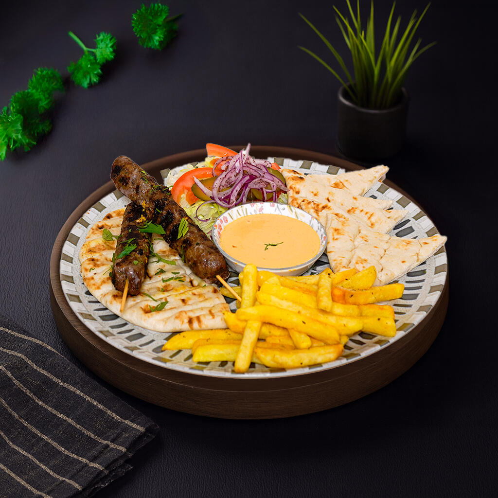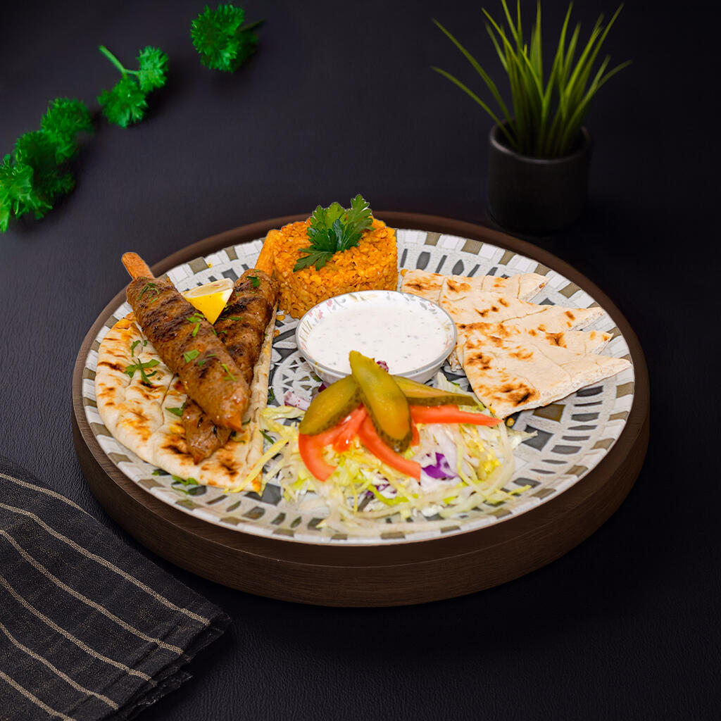 Grilled minced lamb seasoned with Turkish spices served with Greek pita/salad/potatoes or bulgur and a sauce of your choice. (450gr)